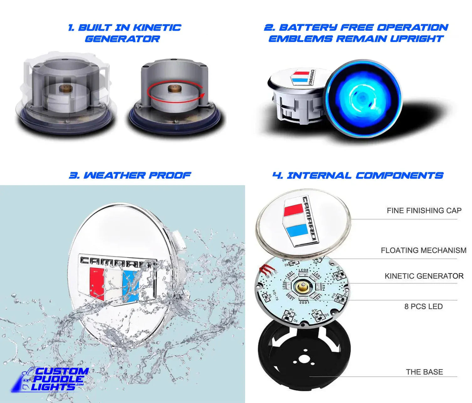 - Magnetic Levitation Technology – The Chevrolet Camaro logo remains upright while driving at speeds under 20 MPH, delivering a premium floating effect.