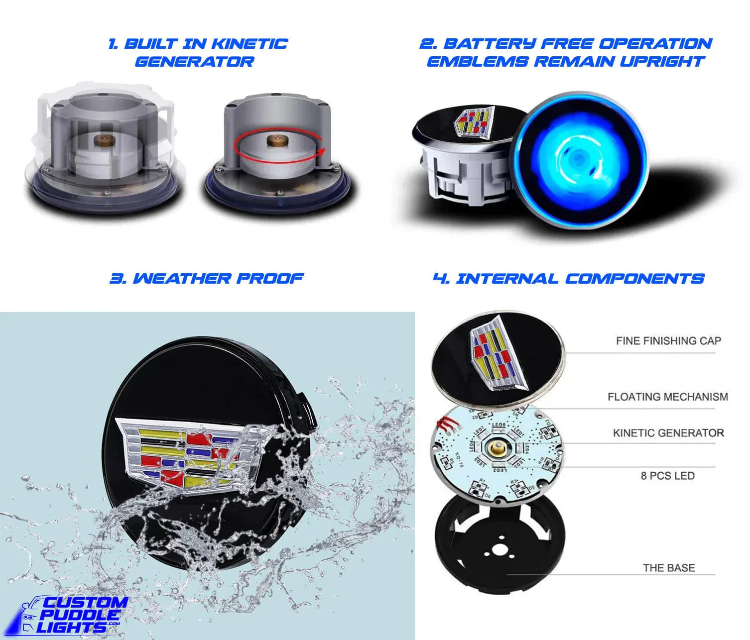 - Luxury Meets Innovation – Elevate the visual appeal of your Cadillac with a dynamic floating logo.